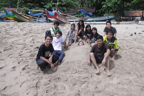 - Bersama Sahabat membuat piramida di Pantai Rancabuaya, 11.50