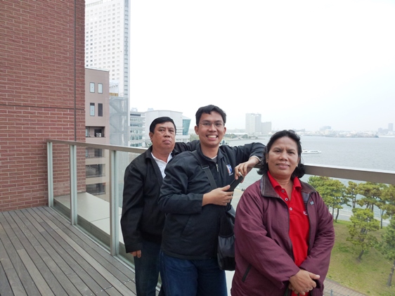 Kami kemudian langsung menuju ke lantai 4. Di sini ada banyak restoran khas negara-negara yang ada di dunia. Menu utamanya ya tetap, yaitu mie instan. Ada stand dari Jepang, Spanyol, Thailand, Eropa, dan masih banyak lagi. Kami pun membeli mie instan dari Spanyol dan Vietnam dan juga Indonesia, kemudian menyantapnya bersama. Setelah beristirahat sejenak sambil mengabadikan beberapa momen, kami kemudian menuju ke balkon luar. Dari sini, kami dapat melihat pemandangan kota Yokahama sore hari. Terlihat pelabuhan Yokohama dan juga Red Brick Warehouse. Karena angin berhembus dengan kencangnya, hanya ada sedikit orang yang berada di balkon ini. Kami pun mengambil beberapa foto di sini.