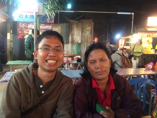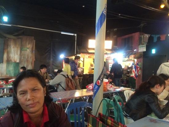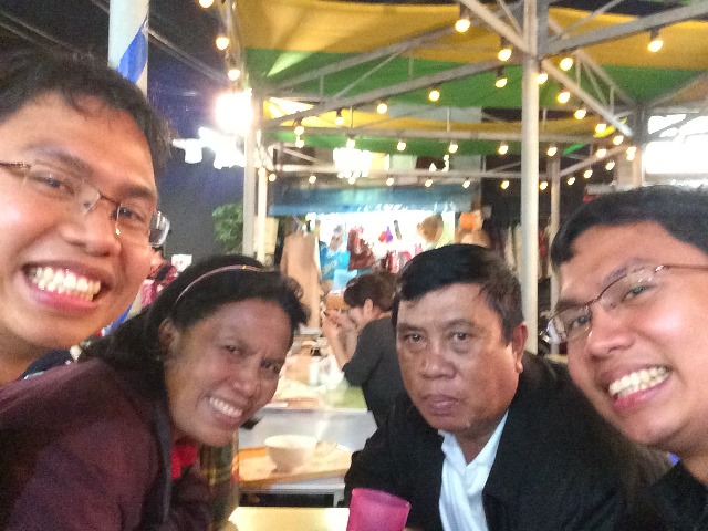 - Makan mie di restoran dengan suasana pasar malam