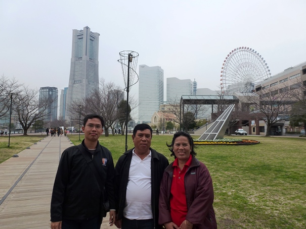 Di seberang juga terlihat bangunan Yokohama World Porter, sebuah bangunan yang cukup besar. Kata adik, itu adalah sebuah pusat perbelanjaan yang cukup terkenal di daerah Yokohama. Di sana juga banyak restoran-restoran dan toko-toko souvenir. Di sebelahnya terlihat kincir raksasa, itulah Yokohama Cosmo World. Itulah kincir raksasa yang pertama kali kami lihat dari Queen’s Square. Oiya, kami tidak sempat mengunjungi Yokohama World Porter, namun kami sempat mengambil beberapa fotonya dari Unga Park. Berikut foto-foto saat berada di Kishamichi Promenade, Yokohama World Porter, dan Unga Park.