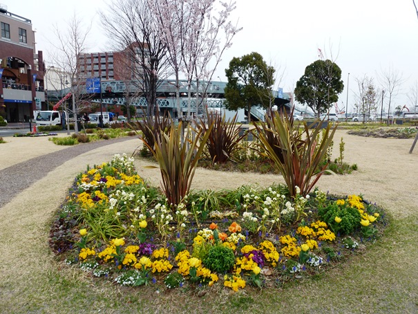 Di ujung dari jembatan ini, ada Unga Park atau Taman Unga, lengkap dengan bunga-bunga yang bermekaran dengan indah. Unga sendiri berarti kanal dalam bahasa Jepang. Taman ini memang terletak di dekat kanal yang menghubungkan teluk Tokyo dan pelabuhan tempat berlabuhnya Nippon Maru. Dari kursi di Unga Park, kita dapat memandang kapal Nippon Maru gagah berdiri dan juga Queens Park dari kejauhan. Sungguh saya mengagumi konsep wisata orang-orang Jepang yang sangat terencana dan memiliki nilai ekstetika yang tinggi. Kami mengambil beberapa fotonya.
