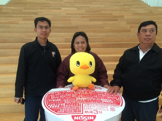 Sudah jam 5.30 rupanya. Kami pun bergegas menuju ke lantai dasar. Di sini kami pun mengambil beberapa foto dengan ikon museum ini yaitu “Anak Ayam” dan juga “Cup” Benar, karena nama mie instan pertama adalah Chicken Ramen, makanya ayam identik dengan museum ini. Setelah itu, kami pun melanjutkan perjalanan ke Yokohama Cosmo World.