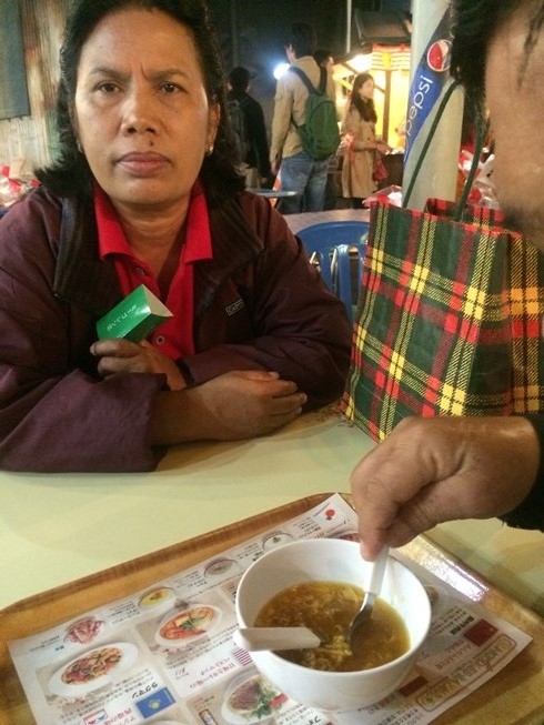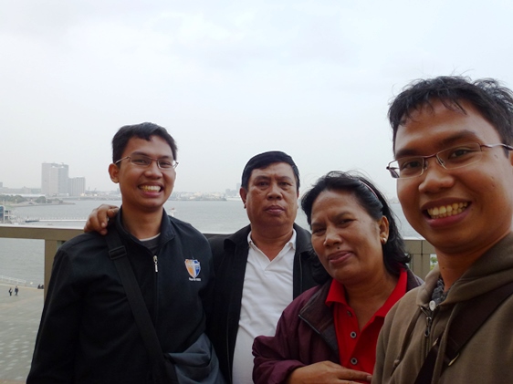 Kami kemudian langsung menuju ke lantai 4. Di sini ada banyak restoran khas negara-negara yang ada di dunia. Menu utamanya ya tetap, yaitu mie instan. Ada stand dari Jepang, Spanyol, Thailand, Eropa, dan masih banyak lagi. Kami pun membeli mie instan dari Spanyol dan Vietnam dan juga Indonesia, kemudian menyantapnya bersama. Setelah beristirahat sejenak sambil mengabadikan beberapa momen, kami kemudian menuju ke balkon luar. Dari sini, kami dapat melihat pemandangan kota Yokahama sore hari. Terlihat pelabuhan Yokohama dan juga Red Brick Warehouse. Karena angin berhembus dengan kencangnya, hanya ada sedikit orang yang berada di balkon ini. Kami pun mengambil beberapa foto di sini.