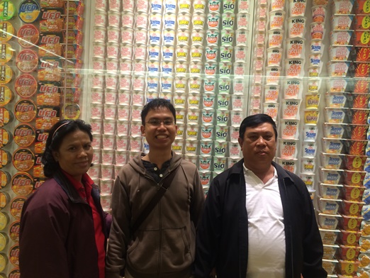 Adik langsung mengantri untuk membeli tiket masuk bagi kami berempat. Sesi tur pas sekali dimulai. Sekitar jam 15.30. Kami mulai masuk ke ruangan-ruangan museum, mulai dari sejarah pembuatan mie di Jepang hingga pembuatan mie di dalam cup pertama kali. Mie di dalam cup ini kemudian yang “booming” di dunia karena orang dapat dengan mudah makan mie di mana pun dan tanpa repot.