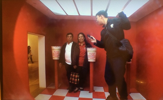 Kami kemudian melanjutkan perjalanan ke ruangan di mana seluruh mi instan di seluruh dunia dipanjang dan diurut berdasarkan waktunya. Kita dapat menemukan jenis-jenis mie instan dan cup noodle yang berasal dari berbagai negara, dan melihat sejarahnya. Mulai dari kemasan, varian rasa, hingga ukuran mi berubah dan menyesuaikan keinginan pelanggan. Oiya, ada merek Indomie juga (merek mi instan yang ada di Indonesia). Kami juga mengambil beberapa foto di sini.